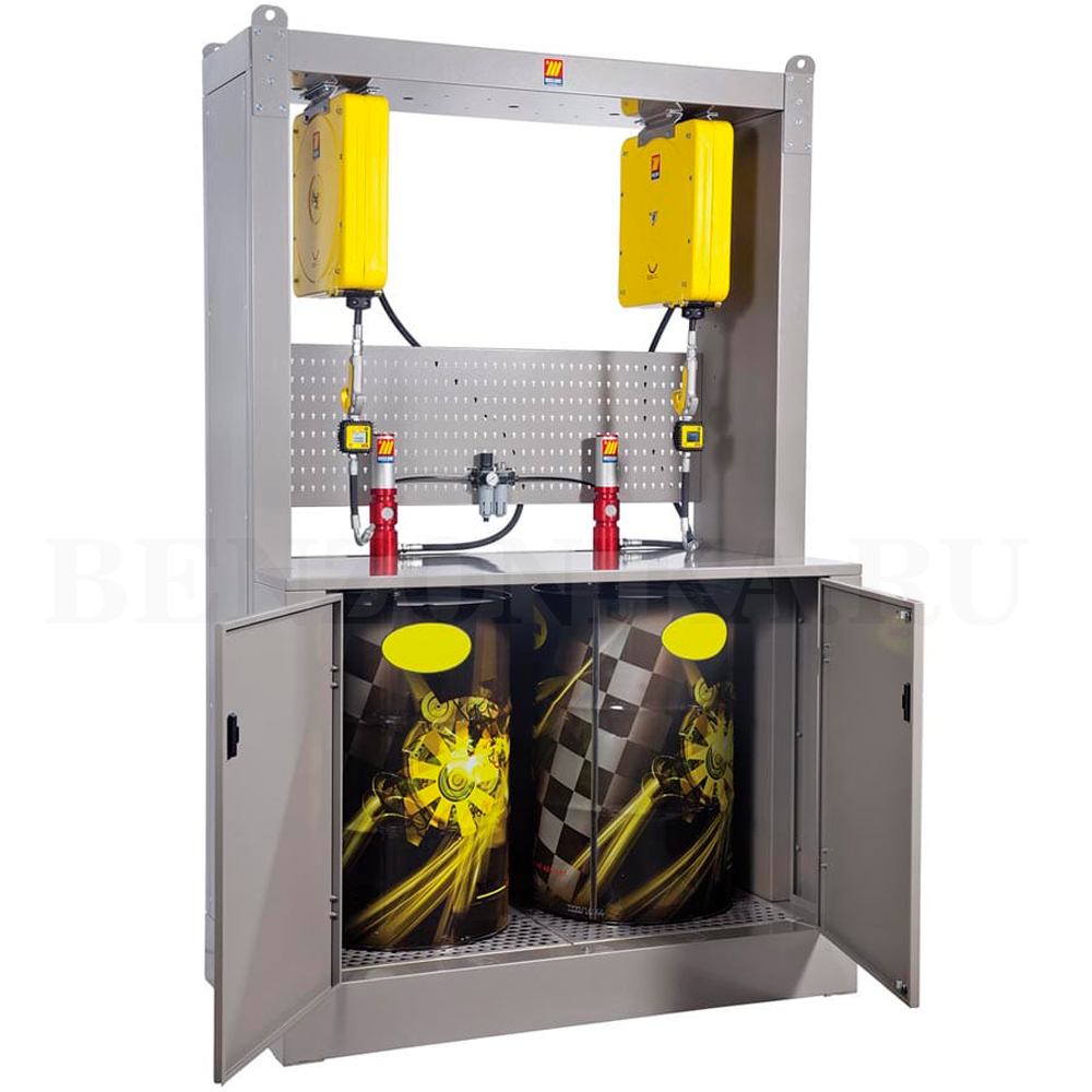 Meclube 023-1967-000 Установка для 2-х точек раздачи масла, шкаф, с катушкой, 3:1, 30 л/мин