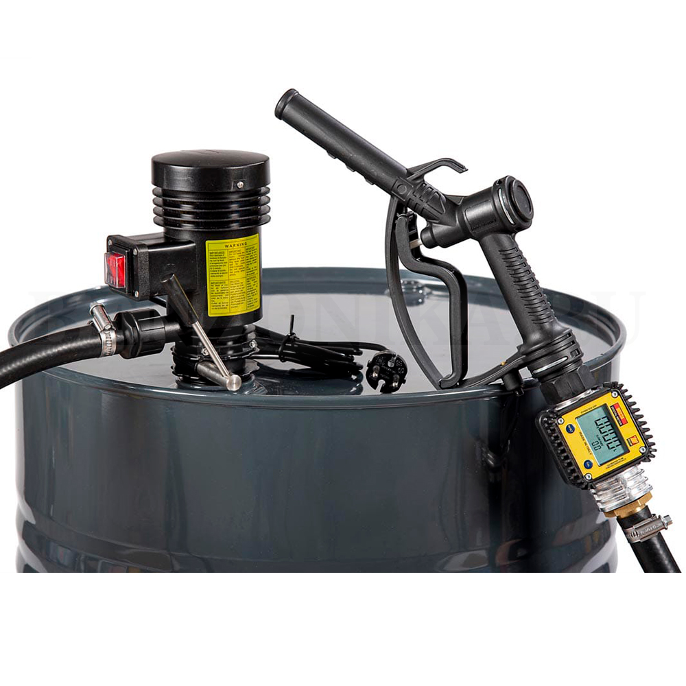 Заправочный блок (бочковой комплект) с ручным топливораздаточным пистолетом устанавливается в стандартную бочку с горловиной 2", оснащен высокопроизводительным центробежным насосом, который перекачивает до 35 литров в минуту. Блок состоит из всасывающей и нагнетательной трубки, электронного счетчика, донного всасывающего фильтра, выключателя. Питание осуществляется от электросети 24 В.