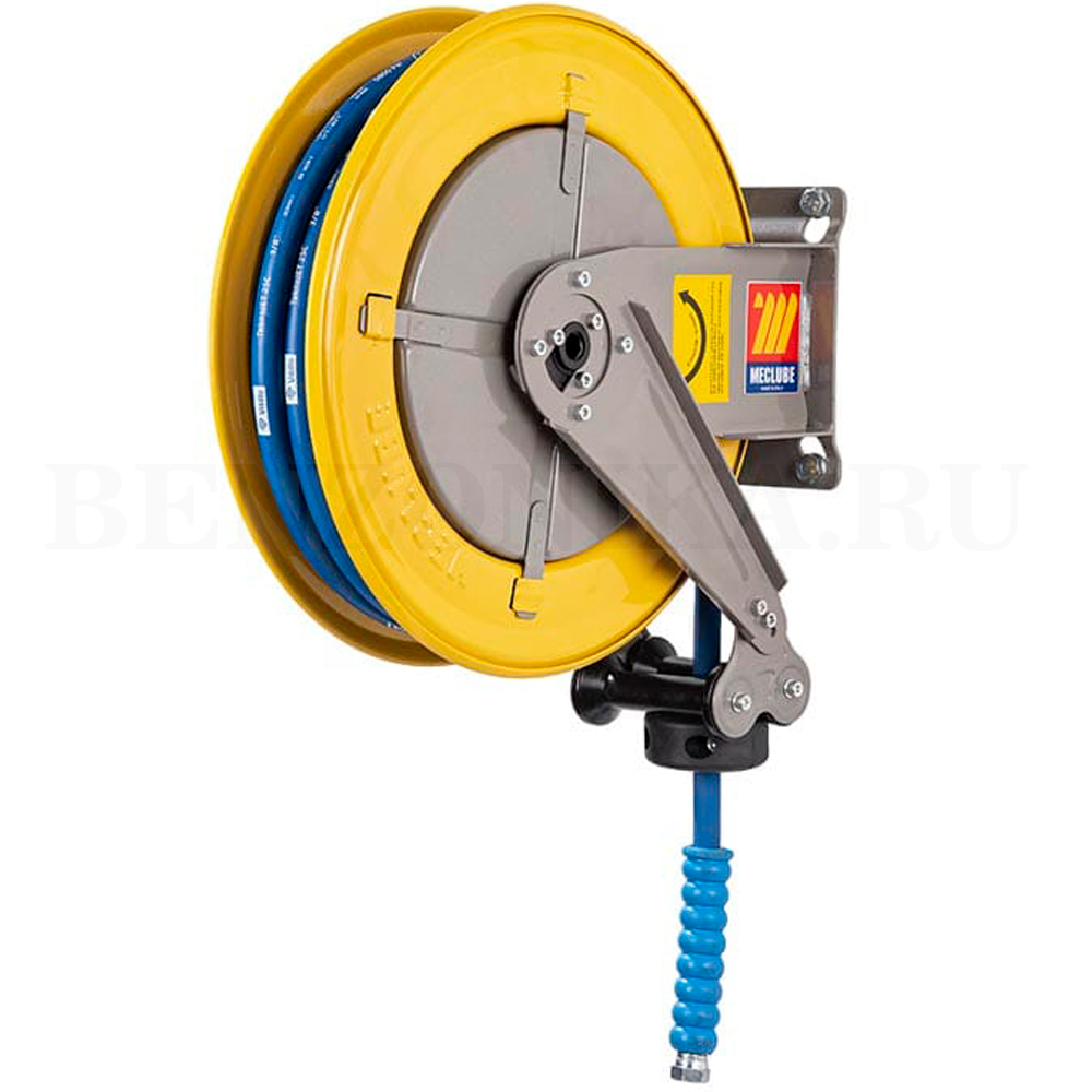 Катушка Meclube 070-1204-210 автоматическая F-400 из окрашенной стали со шлангом 10 метров. Крепление к стене или потолку фиксированное (не поворотное).