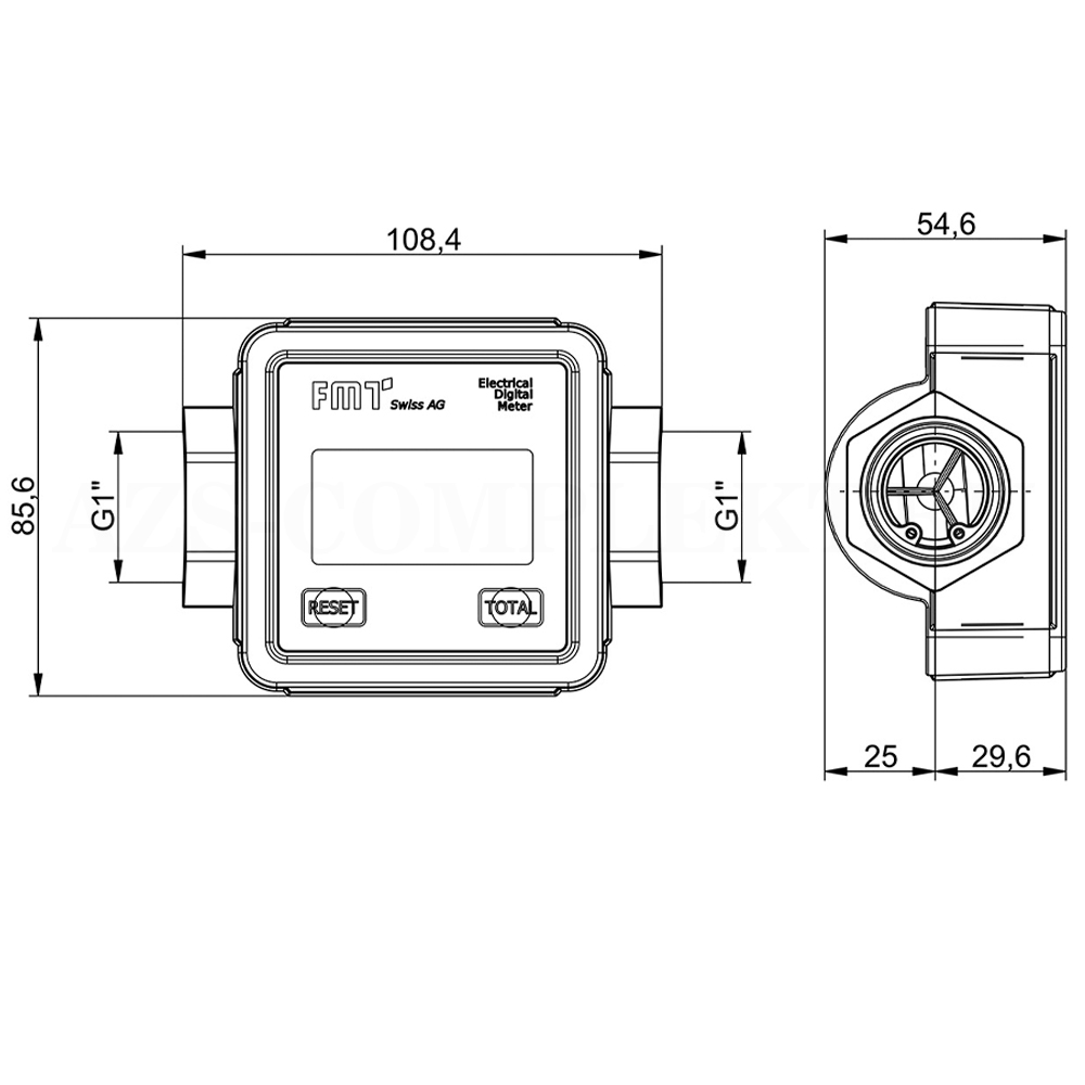 Цифровой турбинный счетчик для дизтоплива, газойля, корпус из алюминия, производительность 15-100 л/мин, вход/выход 1" BSP.