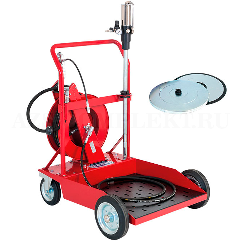 Мобильный комплект для консистентной смазки, пневматический 50:1, для бочек 180 кг (208 литров).