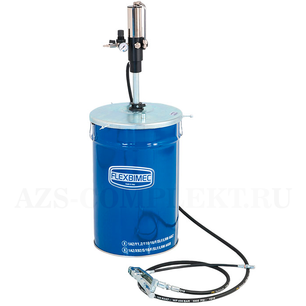 Flexbimec 4961 Полный комплект оборудования для перекачивания консистентной смазки, на базе пневматического поршневого насоса с коэффициентом давления 50:1. Комплект предназначен для работы с 50 кг ёмкостью (ёмкость в комплект поставки не входит).