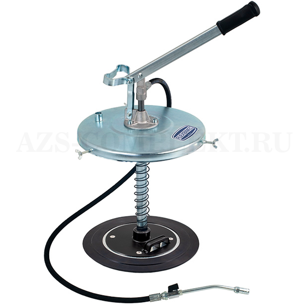 Ручной насос среднего давления для 16-18 литровых бочек для консистентной смазки, в комплекте крышка для бочки, следящая пластина, шланг и кран.