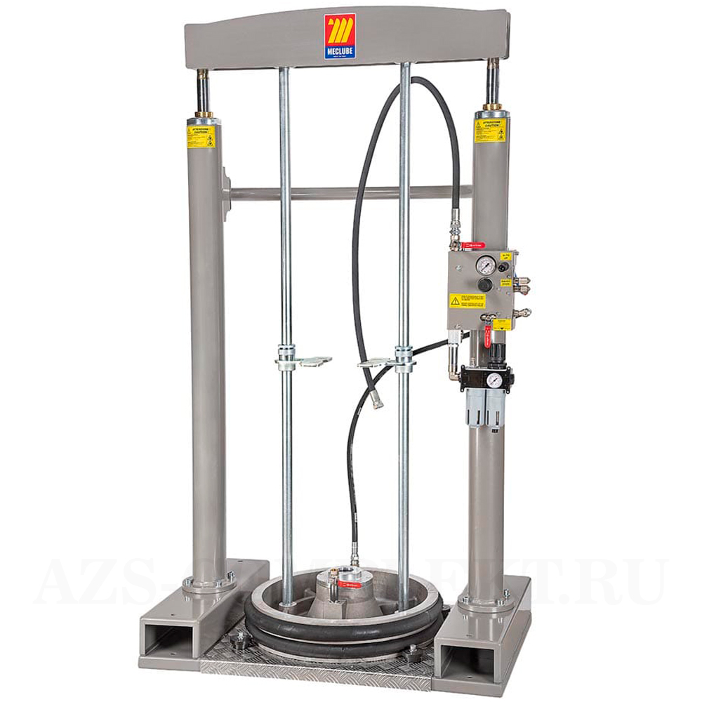 Двухстоечный пневматический рамный пресс-подъёмник Meclube 012-1200-200 (пневматическая экструзионная система) для бочек со смазкой/маслом 180-220 кг.