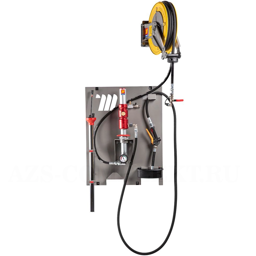 Пневматическое настенное устройство для слива и откачки масла с насосом 1:1 и катушкой Meclube 042-1414-000 купить в разделе: Маслосборники / Маслосборники и ванны Meclube для сбора масла