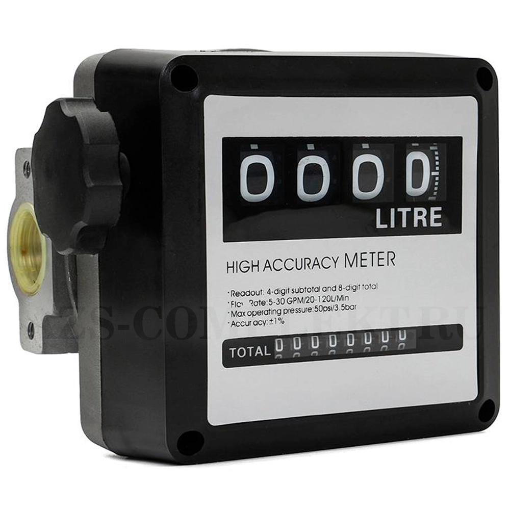 Характеристики* Счетчик учета расхода топлива, механический, 20-120 л/мин, 1" BSP