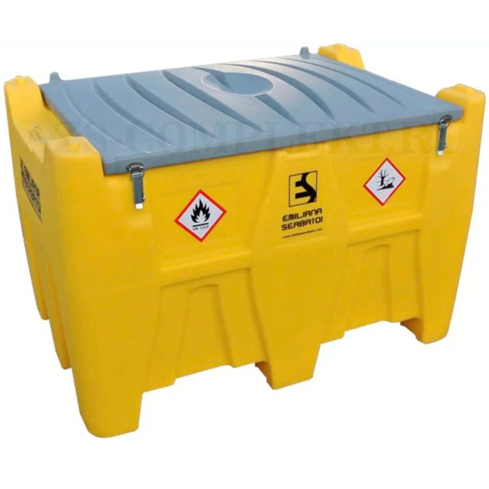 - Безопасность: Закрывающаяся на замок крышка и фитинги, совместимые с дизельным топливом, исключают утечки и загрязнение содержимого.