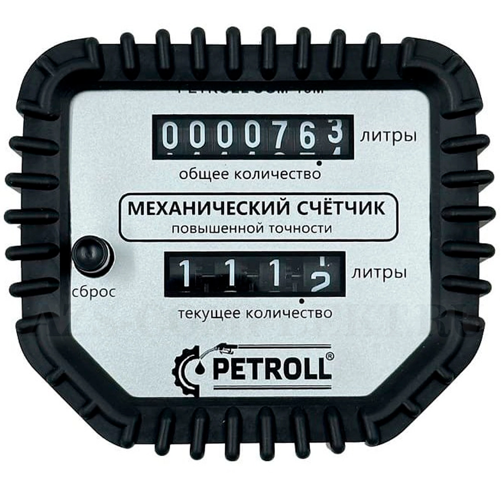 Механический счётчик учета дизельного топлива, керосина, масла и жидких маслопродуктов от компании Petroll. Температура эксплуатации -10 + 55 С. Диапазон вязкости 5-5000 (МПа). Алюминиевый корпус с резиновой защитой по периметру. Показатель текущего и суммарного протока.