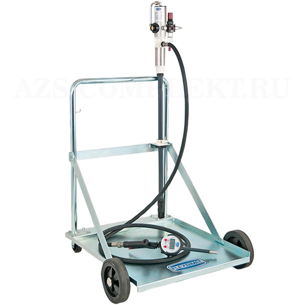 Мобильный пневматический комплект для раздачи AdBlue®/DEF для бочек емкостью 200 литров с усиленной тележкой, пневматическим насосом, цифровым счетчиком и раздаточным краном. Производительность 30 л/мин.